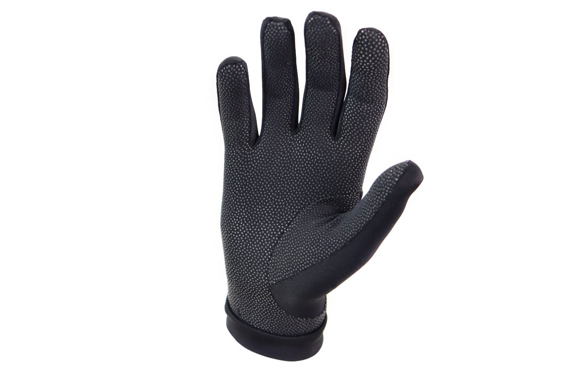 Very close fitting, model with cuff. Glove made with lycra with water repellent treatment and gripping silicone print on the palm.