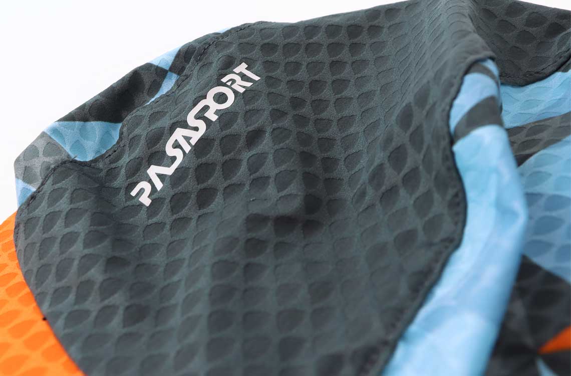 Modello in tessuto aerodinamico di Taiana. Visiera rigida e personalizzazioni in stampa sublimatica.